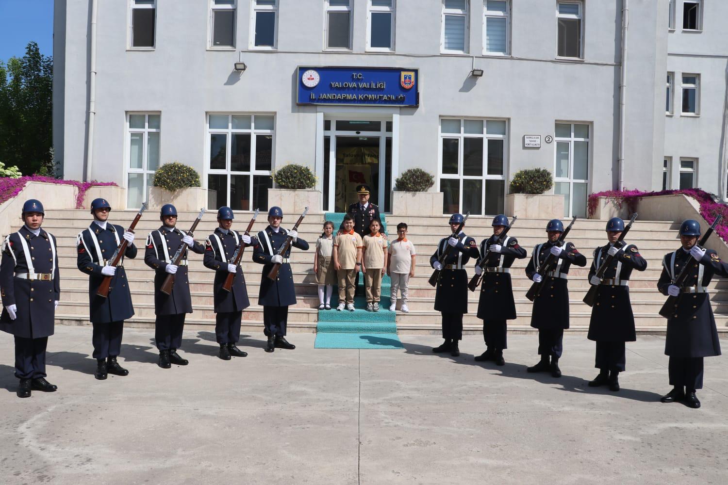 23 Nisan Ulusal Egemenlik ve Çocuk Bayramı etkinlikleri kapsamında, İsmetpaşa Mazlum Palabıyık İlkokulu 4. sınıf öğrencileri Yalova İl Jandarma Komutanlığı’nı ziyaret etti. 22 Nisan 2025 Salı günü gerçekleşen ziyarette Ömer Göktepe, Defne Su Tan, Şeyma Urhan ve Göktuğ Ege Karcı, temsili olarak günün komutanları oldular.