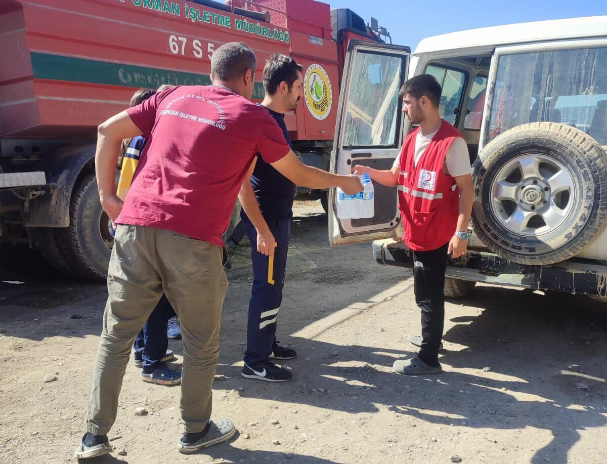 Genel merkezden yapılan açıklamada, yangın söndürme personeli ve gönüllülere soğuk içecek, ikramlık yiyecek, beslenme desteği ve temel ihtiyaç malzemelerinin ulaştırıldığı belirtildi.