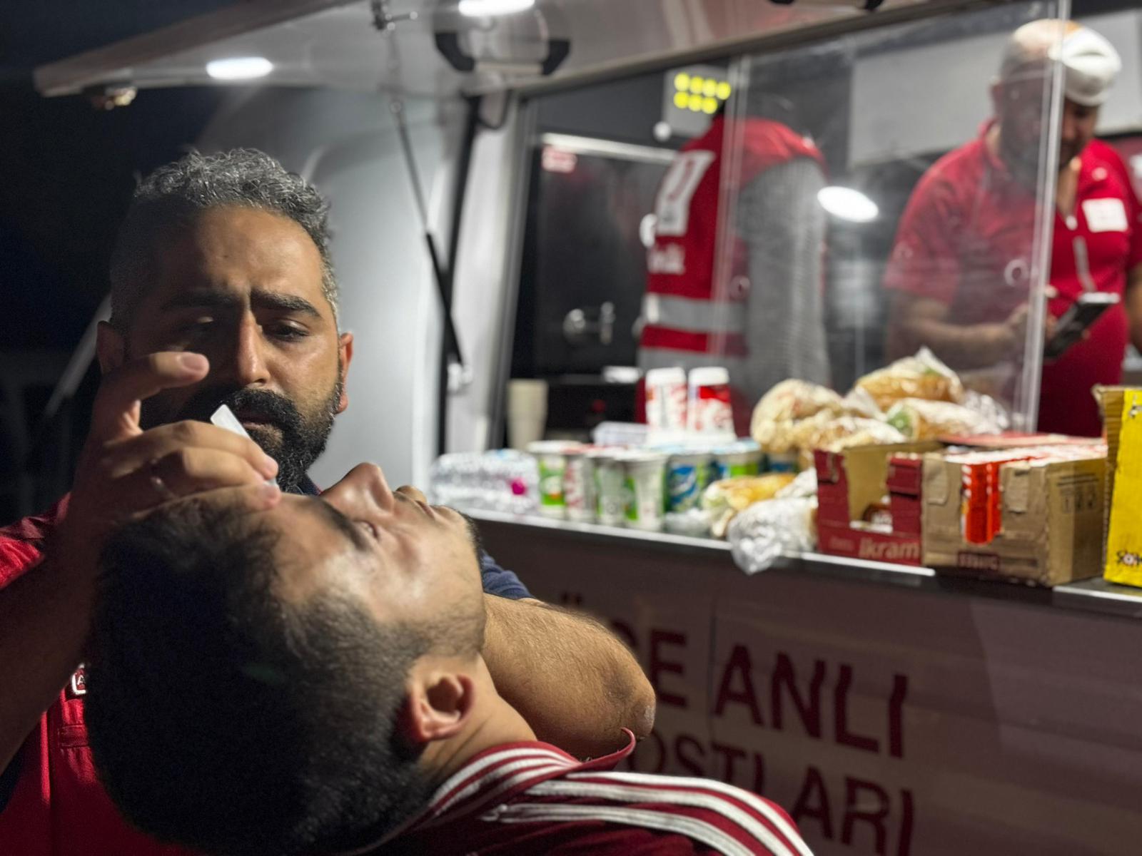 Alevlerle mücadele eden kahraman ekiplerin yanında yer alan Kızılay, dumandan etkilenenler için göz damlası temin ederken, yangın alanlarında gece gündüz süren çalışmaları yakından takip ediyor. Açıklamada, “Kahramanlarımızın 7 gün 24 saat yanındayız” ifadesi kullanıldı.