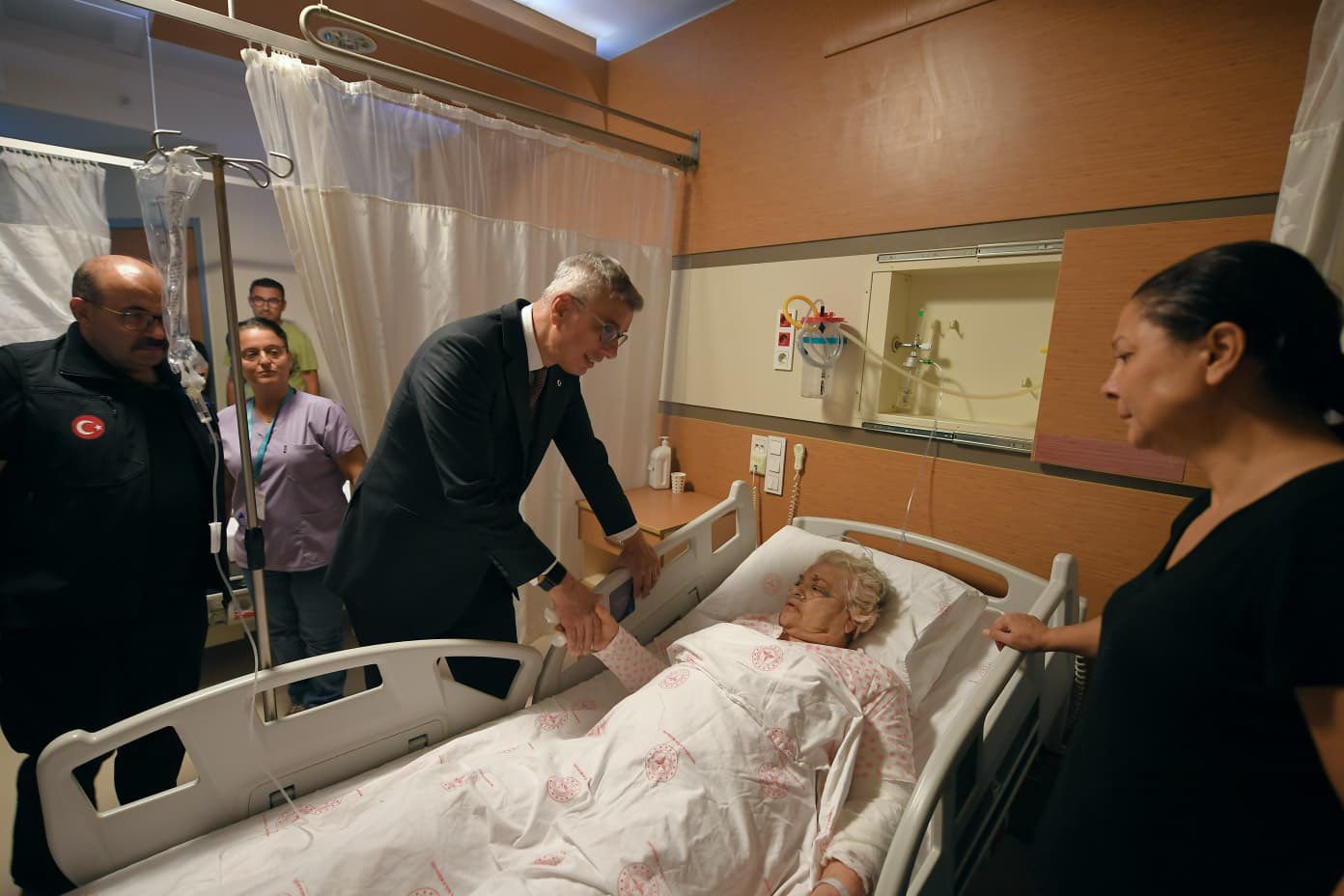 “Depremde yaralanan ve tedavi altına alınan vatandaşlarımızı ziyaret ettik. Yaralılarımızın en kısa sürede sağlıklarına kavuşarak taburcu olmalarını temenni ediyoruz. Rabb’im tüm yaralılarımıza acil şifalar versin.”