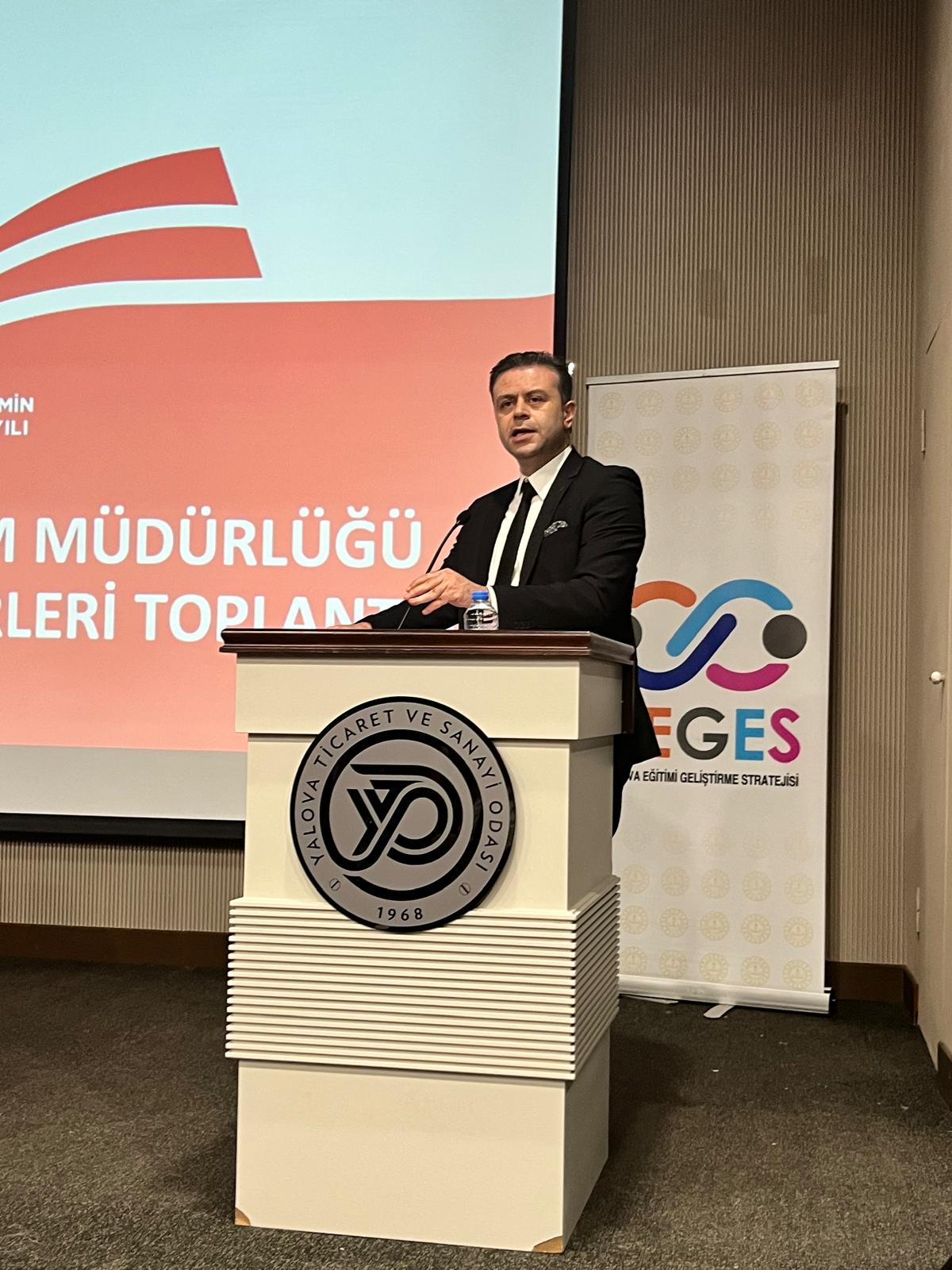 Yalova’da 2024-2025 Eğitim-Öğretim Yılı II. Dönem Başı Okul/Kurum Müdürleri Toplantısı, İl Millî Eğitim Müdürü Halil İbrahim Akmeşe başkanlığında gerçekleştirildi. Ticaret ve Sanayi Odası Konferans Salonu’nda düzenlenen toplantıya, Millî Eğitim Müdür Yardımcıları, İlçe Millî Eğitim Müdürleri, şube müdürleri ve resmi-özel okul/kurum müdürleri katıldı.